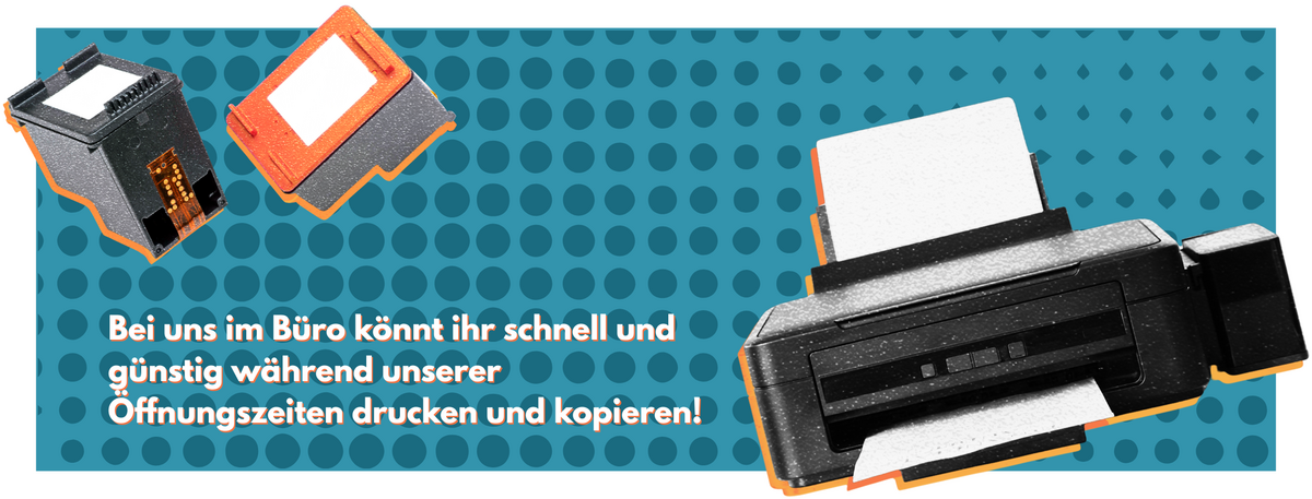 Bei uns im Büro könnt ihr schnell und günstig während unserer Öffnungszeiten drucken und kopieren! Unserer Öffnungszeiten findest du hier.