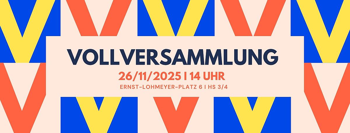 In diesem Semester findet die VV am 26.11.2025 ab 14 Uhr statt. Im Hörsaal 3/4 dem größten Hörsaal der Uni wird getagt.