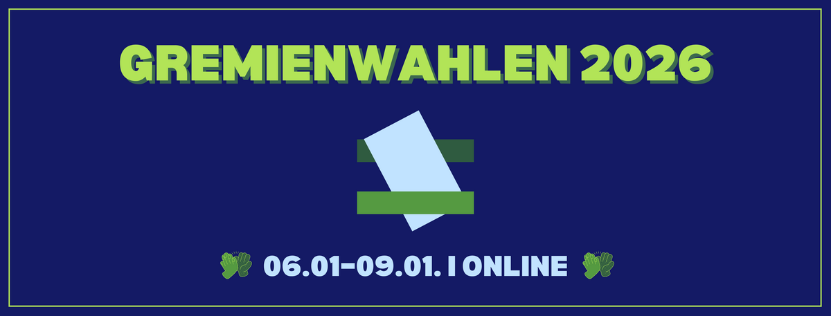 Die studentischen Gremienwahlen finden vom 06.01.2026 8:30 Uhr - 09.01.2026 12:00 Uhr statt.